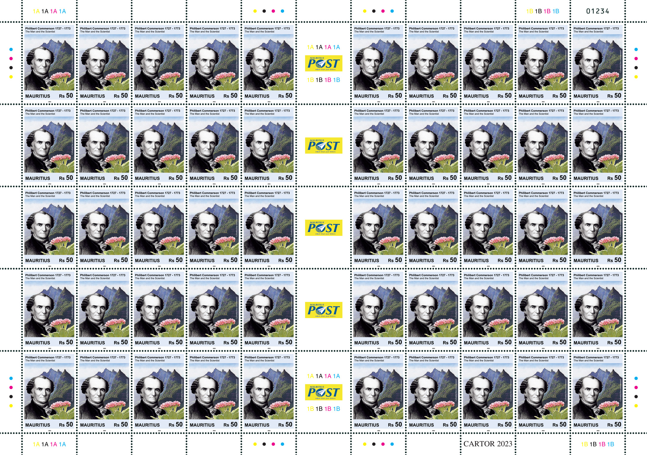 The stamp depicts Commerson’s portrait and the Cylindrocline commersonii, an extremely rare plant endemic to Mauritius and are found only on the slopes of the Moka mountain range.